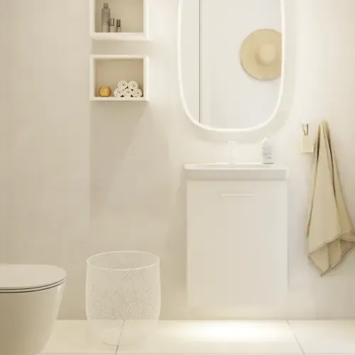 Selvom pladsen på dit nye badeværelse måske ikke er så stor, behøver det ikke at begrænse din kreativitet eller stil. Hos Dansani tror vi på at maksimere potentialet i ethvert rum, uanset størrelse. Vores udvalg af pladsbesparende møbler og intelligente opbevaringsløsninger er designet til at optimere hver kvadratmeter og skabe et badeværelse, der føles rummeligt og funktionelt. Fra smarte vaskeskabe med integreret opbevaring til væghængte toiletter og kompakte brusekabiner - vi har alt hvad du behøver for at skabe et stilfuldt og praktisk badeværelse, selv på begrænset plads.