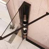 sort mat pulverlakeret overflade med beslag i forkromet zink-aluminium. Teleskopstangen har skjult vægbefæstelse indvendigt