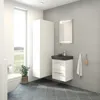 Det flotte Glow spejl er baggrundsbelyst og det firkantede spejl har afrundede hjørner, for et mere blødt og harmonisk udtryk.