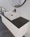 Når du bestiller en bordplade hos Dansani, kan du vælge et vaskeskab og en bordstående vask, som placeres ovenpå bordpladen for et stilrent og fleksibelt design. Husk at du hertil også skal vælge udskæring, så afløbet passer mellem håndvask og bordplade. Vores system gør det let at sammensætte den løsning, der passer til dit badeværelse – uanset om du vil have rene linjer, kontraster eller funktionel opbevaring. Alle bordplader kan kombineres med vores skabe og tilpasses efter dine behov.
