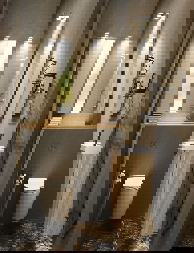 Det flotte Glow spejl er baggrundsbelyst og det firkantede spejl har afrundede hjørner, for et mere blødt og harmonisk udtryk.