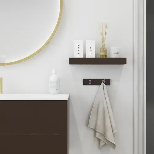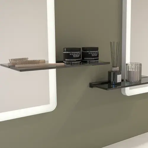 Praktiske hylder sætter prikken over i’et i din indretning af badeværelset og giver dig mulighed for at have de ting du ofte bruger tæt ved hånden. Placer dem ved siden af spejlet og udnyt pladsen under skråvæggen. Du kan vælge forskellige længder og lade hylderne følge væggens eller spejlets form.