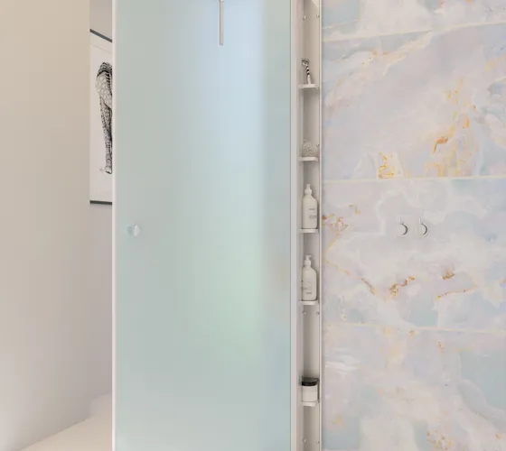 Enkel & elegant brusereol med 5 flytbare hylder, der nemt kombineres med Match døre og holder styr på shampoo, sæbe og alt det, du bruger til badet. Vælg blot din dør 10 cm kortere for at få plads til Tower. Reolen er vendbar.