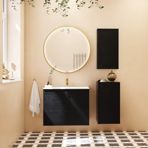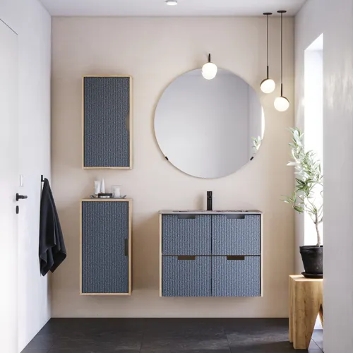 Lighthouse Horizons frontpaneler og skuffer er fremstillet af 60% genanvendt R-PET-filt, som er et let og pladsbesparende alternativ til traditionelle skuffe- og lågematerialer. Ved at bruge Preloc back-to-wall vandlås fra Prevex i 60% genbrugt PP, kan man undgå behovet for en kompleks skæring i skufferne, hvilket giver en mere simpel og bæredygtig skuffekonstruktion.