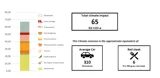 Et Lighthouse Base skab med låger som vist ovenfor svarer til 6 røde bøffer eller 310 kørte km i en bil. Se i grafen fra MÅLBAR, hvordan de 65 kg CO2e fordeler sig på henholdsvis materialer, produktion, emballage, transport mm.