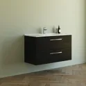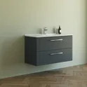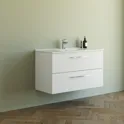 Har du pladsen i dit badeværelse er vores 100 cm vaskeskab fra Mido+ den ideelle løsning. Det enkle og moderne design kombinerer elegance med praktisk funktionalitet. Det flotte vaskeskab er tilgængelig i flere forskellige farver. Amber håndvasken, med sin slanke bordplade og store bassin, er lavet af sanitetsporcelæn, der gør den nem at rengøre og meget slidstærk. Skufferne giver rigelig opbevaringsplads og kan trækkes helt ud for nem adgang. Med soft-close mekanismen lukker skufferne stille og roligt. Standard med stilrene Base greb i krom, men der er mulighed for at tilkøbe greb i andre designs, hvis det ønskes.
