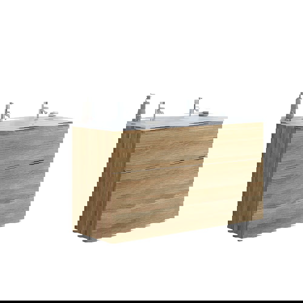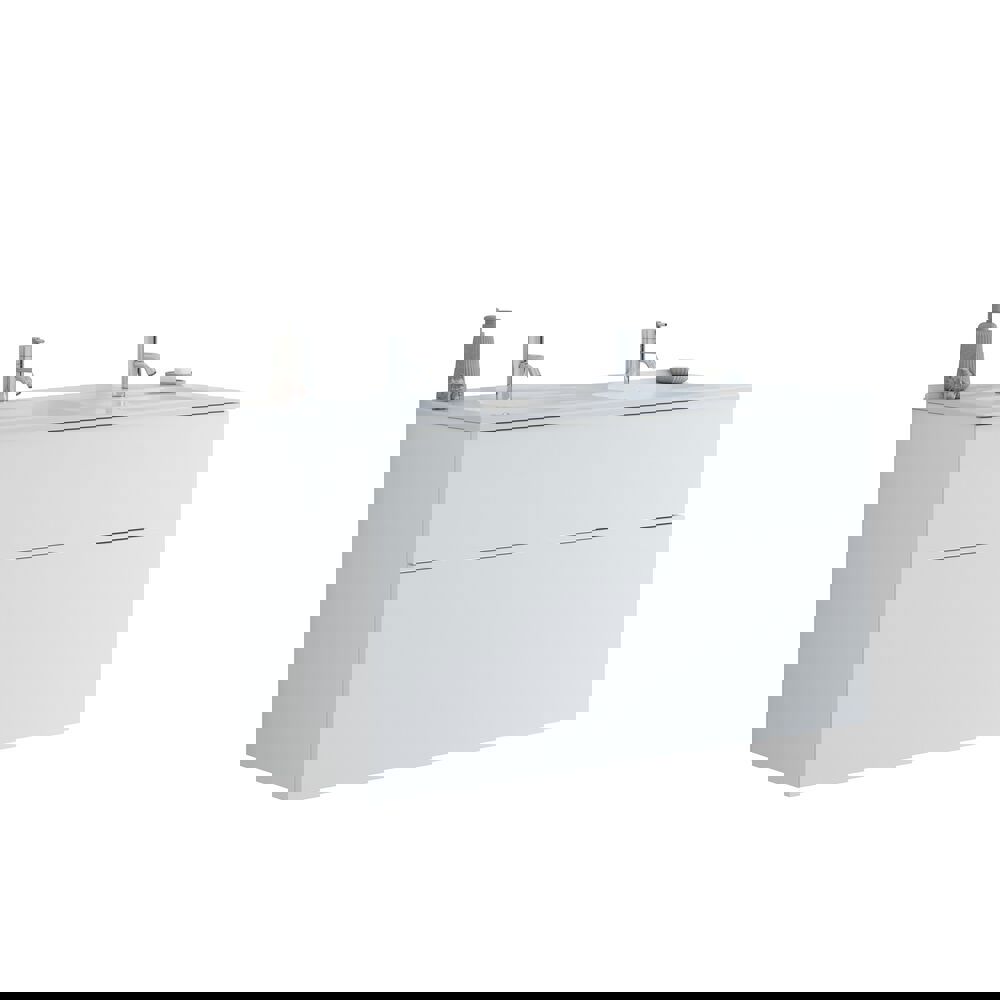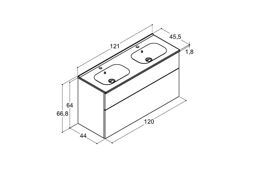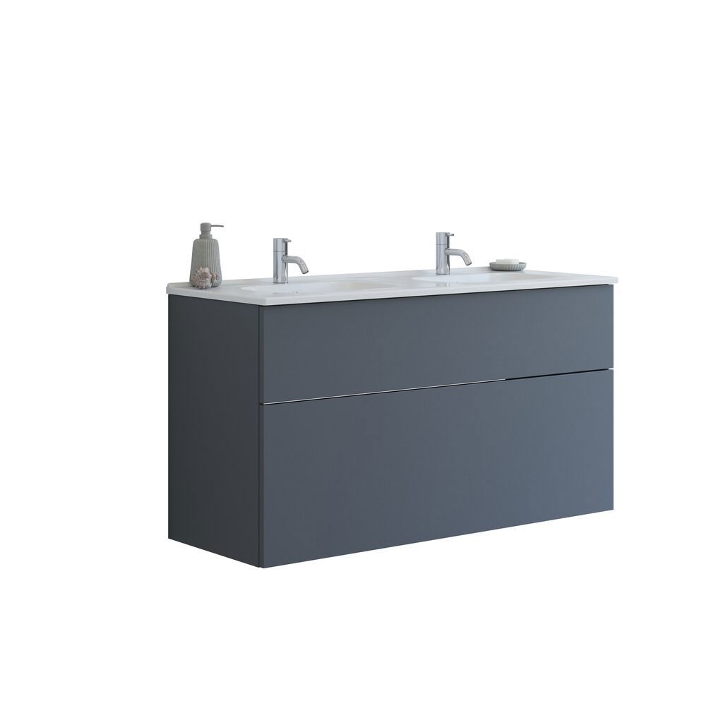 Den eksklusive 120 cm brede møbelpakke med dobbeltvask er ideel til familier eller badeværelser, hvor flere skal kunne bruge vasken samtidig. De to vaske i sanitetsporcelæn har en stærk, rengøringsvenlig overflade, mens vaskeskabet med 2 skuffer giver rigelig opbevaringsplads til hele familien. Skufferne har fuldt udtræk, soft-close og dæmpning. Med den medfølgende indretningspakke kan skufferne organiseres med trææsker, display og fleksibel rumdeler, så alt har sin plads.