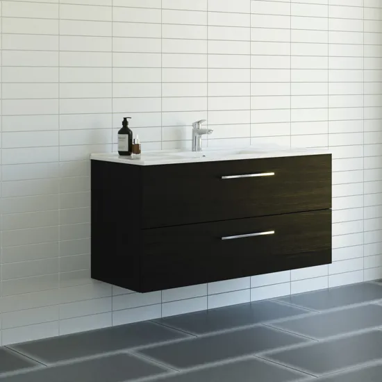 Opnå maksimal opbevaringsplads og stil med vores 120 cm vaskeskab fra Mido+, som selvfølgelig fås i flere forskellige farver, så du får lige det vaskeskab, der passer til din stil. Perfekt til større badeværelser, hvor både funktionalitet og design er vigtige. Amber håndvasken med den elegante, tynde bordplade og det rummelige bassin er lavet af sanitetsporcelæn, som er let at rengøre og yderst holdbart. De store skuffer kan trækkes helt ud, hvilket giver dig det fulde overblik og nem adgang til dine ejendele. Soft-close funktionen sikrer, at skufferne altid lukker stille og roligt. Skabet leveres med stilrene Base greb i krom, men du har mulighed for at tilkøbe greb i andre designs for at matche din personlige stil.
