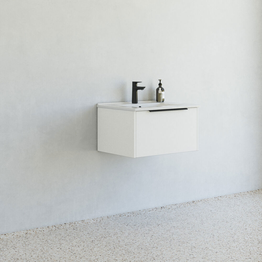 Forny dit badeværelse med et stilrent 60 cm bredt vaskeskab fra Dansani Mido+ Classic. Med sin glatte front og moderne design passer dette vaskeskab perfekt til det minimalistiske badeværelse. Skabet har én rummelig skuffe, der giver dig masser af opbevaringsplads til dine daglige toiletartikler. Den medfølgende Amber vask af sanitetsporcelæn fuldender looket og sikrer en holdbar, hygiejnisk overflade. Fås i farverne hvid mat, lyseblå mat eller sand mat, så du kan vælge den stil, der passer bedst til dit rum.