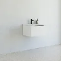 Opgrader dit badeværelse med et elegant 60 cm bredt vaskeskab fra Dansani Mido+ Classic. Dette skab har en unik stribet front, der tilføjer tekstur og personlighed til rummet. Den rummelige skuffe giver praktisk opbevaringsplads til dine badeværelsesartikler. Amber vasken, lavet af sanitetsporcelæn, giver en slidstærk og stilfuld overflade, der er let at rengøre. Vaskeskabet fås i tre moderne farver: hvid mat, lyseblå mat og sand mat, så du kan skabe den perfekte stemning på badeværelset.