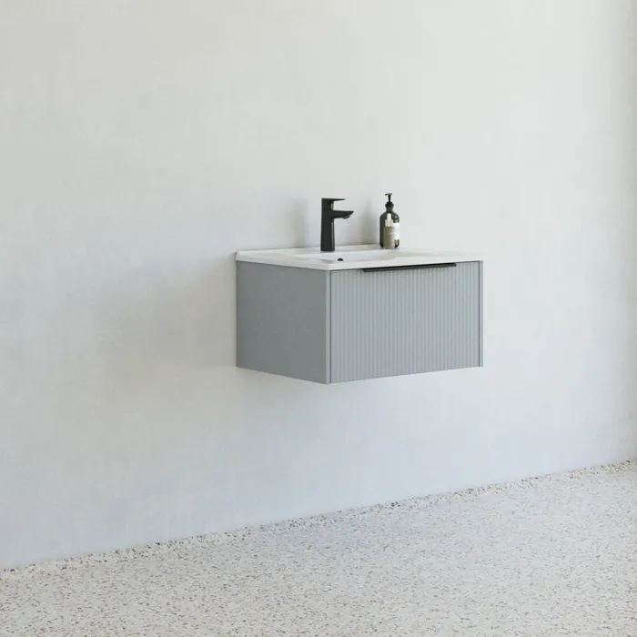 Opgrader dit badeværelse med et elegant 60 cm bredt vaskeskab fra Dansani Mido+ Classic. Dette skab har en unik stribet front, der tilføjer tekstur og personlighed til rummet. Den rummelige skuffe giver praktisk opbevaringsplads til dine badeværelsesartikler. Amber vasken, lavet af sanitetsporcelæn, giver en slidstærk og stilfuld overflade, der er let at rengøre. Vaskeskabet fås i tre moderne farver: hvid mat, lyseblå mat og sand mat, så du kan skabe den perfekte stemning på badeværelset.