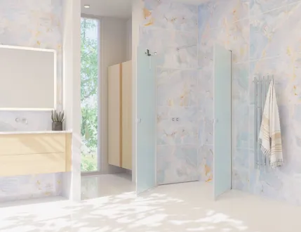 Disse svingdøre bringer både elegance og funktionalitet til dit badeværelse. Dørene er yderst praktiske og brugervenlige, idet de kan åbnes både udad og indad. Derved kan du frigive plads i dit badeværelse, når bruseren ikke er i brug. Svingdørene åbner og lukker let og lydløst på holdbare hængsler og sørger for en problemfri adgang til bruseren. Samtidig giver de en effektiv afskærmning, der holder vandet inde i bruseområdet og bevarer resten af badeværelset tørt og rent. Det hærdede glas i dørene er behandlet med EasyCare, hvilket forlænger holdbarheden og levetiden på dine svingdøre.