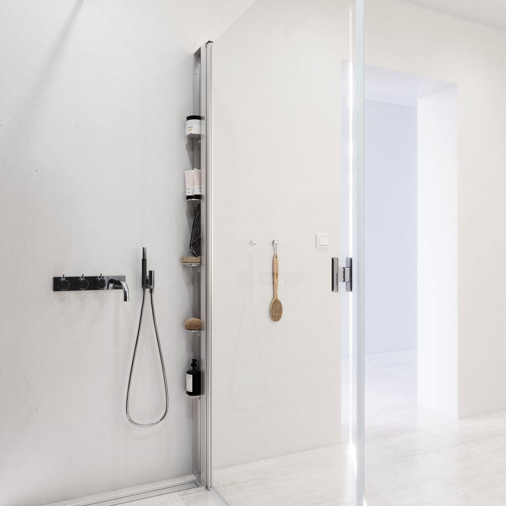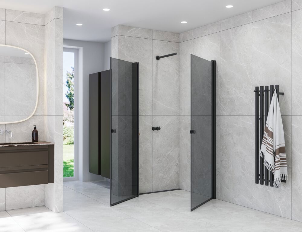 Disse svingdøre bringer både elegance og funktionalitet til dit badeværelse. Dørene er yderst praktiske og brugervenlige, idet de kan åbnes både udad og indad. Derved kan du frigive plads i dit badeværelse, når bruseren ikke er i brug. Svingdørene åbner og lukker let og lydløst på holdbare hængsler og sørger for en problemfri adgang til bruseren. Samtidig giver de en effektiv afskærmning, der holder vandet inde i bruseområdet og bevarer resten af badeværelset tørt og rent. Det hærdede glas i dørene er behandlet med EasyCare, hvilket forlænger holdbarheden og levetiden på dine svingdøre.