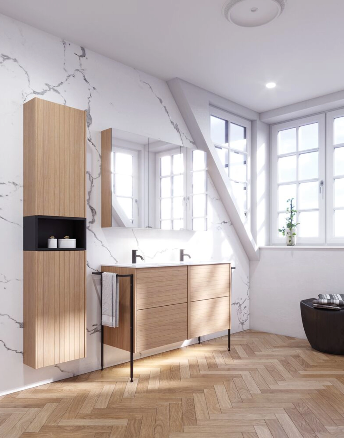 Dansanis åbne reoler er den perfekte tilføjelse til at skabe et stilfuldt og funktionelt badeværelse. Disse reoler er designet til alsidig brug og kan monteres direkte på væggen, enten som en enkeltstående enhed eller i kombination med et eller to overskabe. Med deres åbne design tilbyder disse reoler både opbevaringsløsninger og en udstillingsplads til dine yndlingsgenstande eller badeværelsesartikler. Brug dem til at organisere håndklæder, dekorative elementer eller personlige fornødenheder, og skab samtidig en visuel interesse i dit badeværelsesdesign. Muligheden for at kombinere disse åbne reoler med overskabe giver dig yderligere fleksibilitet til at tilpasse din opbevaringsplads efter behov og skabe en symmetrisk og funktionel indretning. Dansanis åbne reoler tilføjer en moderne og luksuriøs dimension til dit badeværelse og skaber et rum, der er både smukt og praktisk. OBS: Der er et opstartstillæg (BI1) til produkter med valgfri farve. Det betales én gang pr. valgfri farve uanset antal produkter.