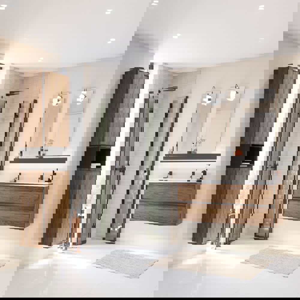 Den åbne reol har en dybde på 35 cm og passer derfor perfekt sammen med underskabene i Luna. Reolen kan monteres direkte på væggen og bruges både alene eller i kombination med et eller to overskabe, alt efter hvilket udtryk og hvilken funktion du ønsker. Det åbne design giver dig både praktisk opbevaring og mulighed for at fremhæve dine yndlingsting – lige fra håndklæder og badeværelsesartikler til dekorative detaljer, der skaber personlighed i rummet. Kombinationen af funktionalitet og æstetik gør reolen til et fleksibelt valg, der kan tilpasses dit behov. Med Dansanis åbne reoler får du et moderne og stilrent element, der både tilfører dit badeværelse et eksklusivt udtryk og gør hverdagen mere overskuelig. OBS: Der er et opstartstillæg (BI1) til produkter med valgfri farve. Det betales én gang pr. valgfri farve uanset antal produkter.
