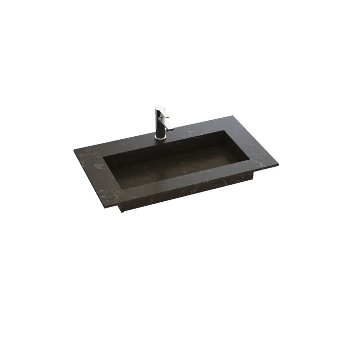 Med Angular håndvasken får du ikke blot et elegant og kantet design, men også muligheden for at få en vask, der passer perfekt til dit badeværelse. Vasken kan skræddersys efter mål, hvilket betyder, at den kan tilpasses præcist til dine behov og rummets dimensioner. Denne fleksibilitet gør Angular til det ideelle valg, når du ønsker en vask, der både er funktionel og designmæssigt integrerer sig optimalt i dit badeværelsesindretning. Håndvasken er udviklet i samarbejde med Cosentino og fås i både de klassiske Silestone dekorer og den nye, bæredygtige Trilium dekor i Dekton. Trilium står med sit rå, fliselignende udseende og er fremstillet af op til 80% genbrugsmateriale, hvilket giver vasken et ekstra miljøvenligt touch. Den elegante designfilosofi omfatter et skrånet bassin, der leder vandet effektivt mod et skjult afløb, hvilket resulterer i et både stilfuldt og praktisk design. Silestone og Dekton materialerne er ikke kun smukke, men også bæredygtige, da de produceres med vedvarende energi og genanvender 99% af vandet i produktionen.