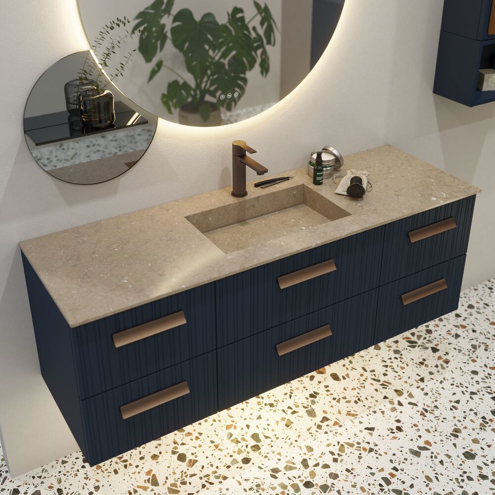 Med Angular håndvasken får du ikke blot et elegant og kantet design, men også muligheden for at få en vask, der passer perfekt til dit badeværelse. Vasken kan skræddersys efter mål, hvilket betyder, at den kan tilpasses præcist til dine behov og rummets dimensioner. Denne fleksibilitet gør Angular til det ideelle valg, når du ønsker en vask, der både er funktionel og designmæssigt integrerer sig optimalt i dit badeværelsesindretning. Håndvasken er udviklet i samarbejde med Cosentino og fås i både de klassiske Silestone dekorer og den nye, bæredygtige Trilium dekor i Dekton. Trilium står med sit rå, fliselignende udseende og er fremstillet af op til 80% genbrugsmateriale, hvilket giver vasken et ekstra miljøvenligt touch. Den elegante designfilosofi omfatter et skrånet bassin, der leder vandet effektivt mod et skjult afløb, hvilket resulterer i et både stilfuldt og praktisk design. Silestone og Dekton materialerne er ikke kun smukke, men også bæredygtige, da de produceres med vedvarende energi og genanvender 99% af vandet i produktionen.