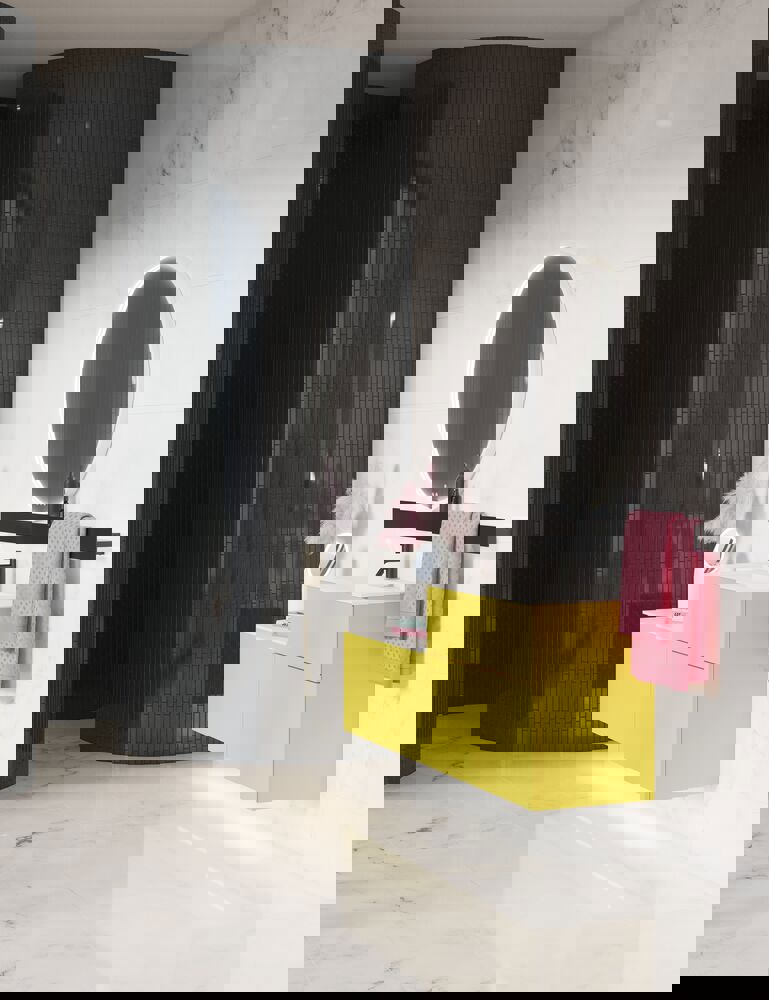 Angular håndvasken repræsenterer det perfekte valg til moderne badeværelser med sit minimalistiske look og skarpe, kantede design. Vasken er udviklet i tæt samarbejde med Cosentino og fås i de populære Silestone dekorer samt den bæredygtige Dekton dekor, Trilium. Trilium er kendt for sit rå, industrielle udseende og fremstilles af op til 80% genbrugsmaterialer, hvilket gør det til et ansvarligt valg, både æstetisk og miljømæssigt. Vasken er udformet af pladestykker, der er limet sammen for at skabe et elegant og funktionelt bassin. Bassinets bund er skrånet for at lede vandet effektivt mod det smalle, skjulte afløb, der strækker sig over vaskens bredde, hvilket giver et stilrent og funktionelt udtryk. Angular håndvasken er en ideel løsning til dem, der ønsker et både smukt og bæredygtigt element i badeværelset, hvor både design og funktion går hånd i hånd.