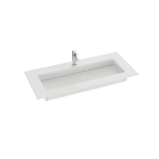 Angular håndvasken repræsenterer det perfekte valg til moderne badeværelser med sit minimalistiske look og skarpe, kantede design. Vasken er udviklet i tæt samarbejde med Cosentino og fås i de populære Silestone dekorer samt den bæredygtige Dekton dekor, Trilium. Trilium er kendt for sit rå, industrielle udseende og fremstilles af op til 80% genbrugsmaterialer, hvilket gør det til et ansvarligt valg, både æstetisk og miljømæssigt. Vasken er udformet af pladestykker, der er limet sammen for at skabe et elegant og funktionelt bassin. Bassinets bund er skrånet for at lede vandet effektivt mod det smalle, skjulte afløb, der strækker sig over vaskens bredde, hvilket giver et stilrent og funktionelt udtryk. Angular håndvasken er en ideel løsning til dem, der ønsker et både smukt og bæredygtigt element i badeværelset, hvor både design og funktion går hånd i hånd.