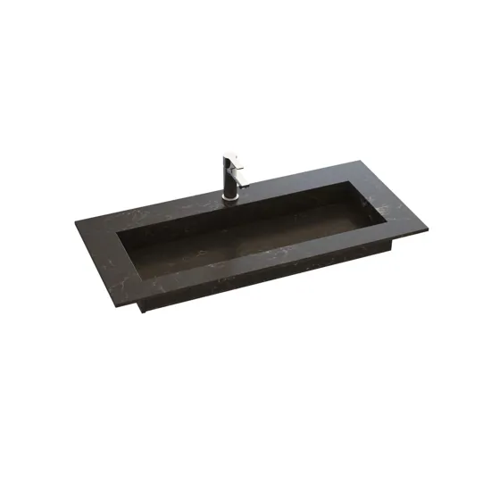 Angular håndvasken repræsenterer det perfekte valg til moderne badeværelser med sit minimalistiske look og skarpe, kantede design. Vasken er udviklet i tæt samarbejde med Cosentino og fås i de populære Silestone dekorer samt den bæredygtige Dekton dekor, Trilium. Trilium er kendt for sit rå, industrielle udseende og fremstilles af op til 80% genbrugsmaterialer, hvilket gør det til et ansvarligt valg, både æstetisk og miljømæssigt. Vasken er udformet af pladestykker, der er limet sammen for at skabe et elegant og funktionelt bassin. Bassinets bund er skrånet for at lede vandet effektivt mod det smalle, skjulte afløb, der strækker sig over vaskens bredde, hvilket giver et stilrent og funktionelt udtryk. Angular håndvasken er en ideel løsning til dem, der ønsker et både smukt og bæredygtigt element i badeværelset, hvor både design og funktion går hånd i hånd.