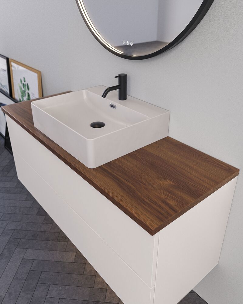 Laminatbordplader tilføjer både funktion og stil til dit badeværelse. Med et design, der passer perfekt til Dansani Lunas moderne æstetik, giver laminatbordpladerne en holdbar og praktisk overflade til dit badeværelse. Laminat er kendt for sin modstandsdygtighed over for slid, pletter og fugt, hvilket gør det ideelt til et rum som badeværelset. Laminatbordplader fås i forskellige farver og teksturer, der kan tilpasses din personlige smag og indretning