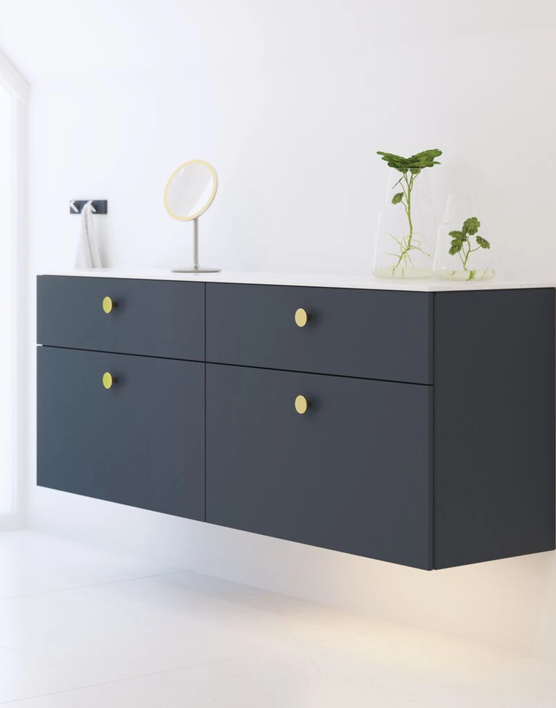 Button er et klassisk men også moderne rundt knopgreb, som lige giver dine badeværelsesmøbler det sidste pift. Det runde greb passer ind i de fleste stilarter på badeværelset, og knopgrebet Button er nemt at gribe fat i, så du kan tilgå dine ting i skabe og skuffer uden problemer. Det sorte Button greb findes i OceanIX Plastix, som er genanvendt plastik fra eksempelvis brugte fiskenet.