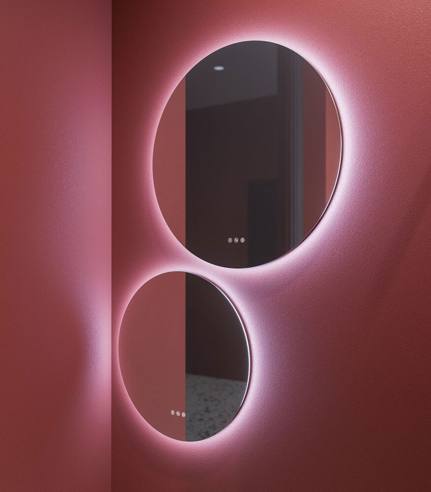 Corona er et elegant, rundt spejl, der har en smuk belysning bagved spejlet. Corona spejlet fås her i en udgave med lysstyring, hvilket betyder at du selv kan justere både styrke og temperatur i dit badeværelse. Det smukke lys bagved Corona spejlet vil justere sig alt efter hvilken indstilling du vælger. Brug Corona spejlet på dit badeværelse eller andre steder i din bolig. Til spejlet kan du tilkøbe et formonteret varmelegeme, så du undgår at spejlet dugger, når du er i bad.