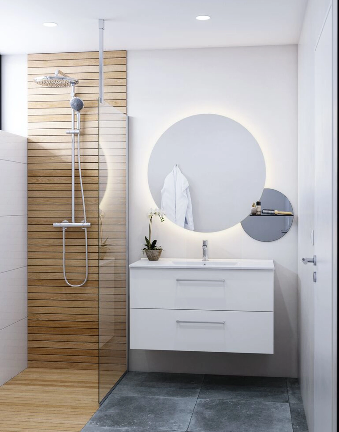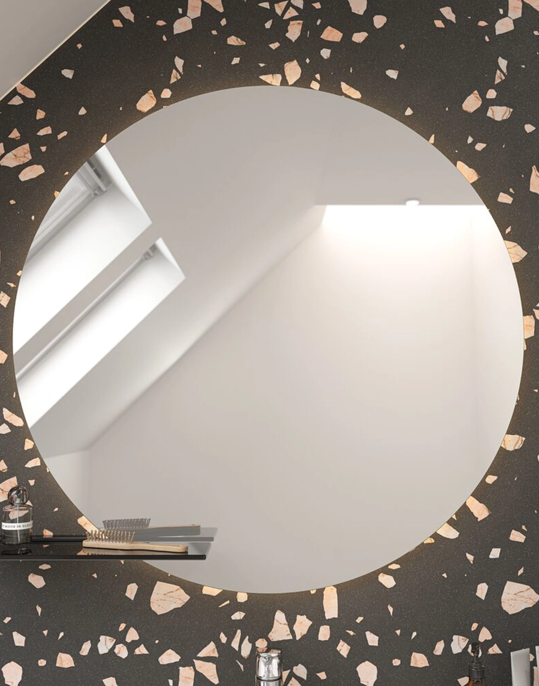 Corona er et smukt og elegant, rundt spejl, og den subtile baggrundsbelysning fremhæver dit badeværelse og skaber en skøn atmosfære. Du kan både bruge Corona spejlet over et vaskeskab eller som et selvstændigt element på væggen. Denne subtile og jævne belysning bag spejlet skaber en behagelig glød, der fremhæver ansigtet uden at være for skarp eller blændende. Corona spejlet er nemt at installere, rengøre og lavet af kvalitetsmaterialer, så det kan modstå fugten i badeværelset. Til spejlet kan du tilkøbe et varmelegeme, så du undgår at spejlet dugger, når du er i bad. Varmelegemet skal du selv montere.