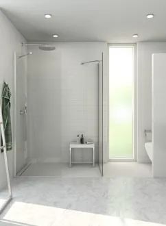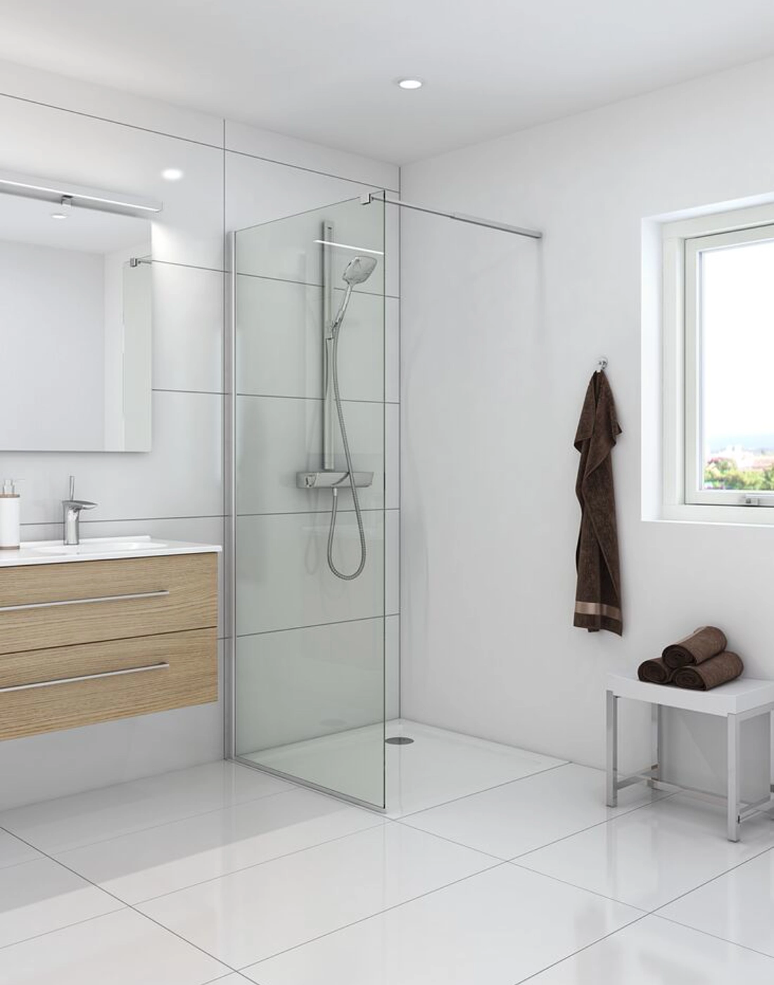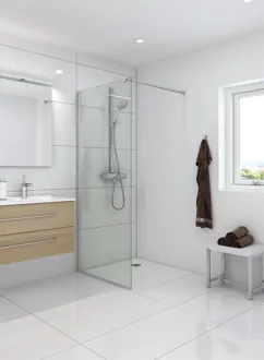 Disse faste vægge er designet med fokus på at skabe et rummeligt og stilfuldt bruseområde, der fuldt ud kan tilpasses din personlige stil og badeværelsets indretning. Vores faste vægge kan kombineres med andre brusevægge eller brusedøre, og du har derfor mulighed for at lave en løsning, der passer perfekt ind i dit badeværelse. Måske du har meget plads og kan lave en walk-in-bruser? Eller måske du vil kombinere den faste væg med en svingdør for en stabil og sikker løsning? Uanset hvad du vælger, kan du finde netop den løsning, der passer dig bedst. Glasset i de faste vægge er behandlet med EasyCare, som er en speciel belægning, der afviser vand og sæberester, hvilket gør rengøringen betydeligt lettere. Glasset er desuden hærdet, og den stærke konstruktion og de solide materialer sikrer, at væggene er stabile og pålidelige.