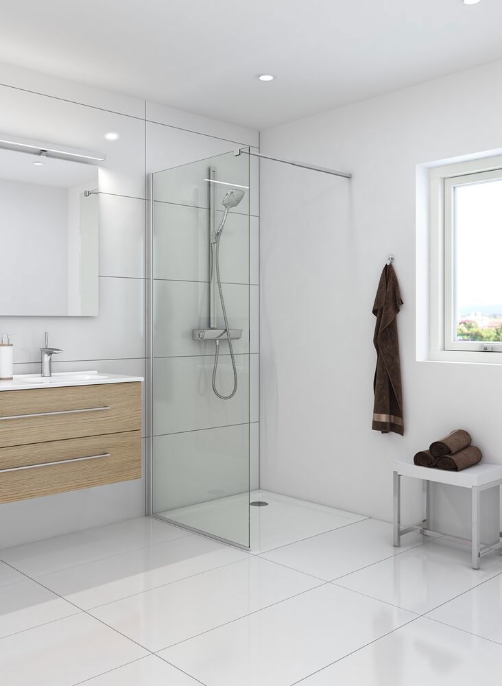 Disse faste vægge er designet med fokus på at skabe et rummeligt og stilfuldt bruseområde, der fuldt ud kan tilpasses din personlige stil og badeværelsets indretning. Vores faste vægge kan kombineres med andre brusevægge eller brusedøre, og du har derfor mulighed for at lave en løsning, der passer perfekt ind i dit badeværelse. Måske du har meget plads og kan lave en walk-in-bruser? Eller måske du vil kombinere den faste væg med en svingdør for en stabil og sikker løsning? Uanset hvad du vælger, kan du finde netop den løsning, der passer dig bedst. Glasset i de faste vægge er behandlet med EasyCare, som er en speciel belægning, der afviser vand og sæberester, hvilket gør rengøringen betydeligt lettere. Glasset er desuden hærdet, og den stærke konstruktion og de solide materialer sikrer, at væggene er stabile og pålidelige.