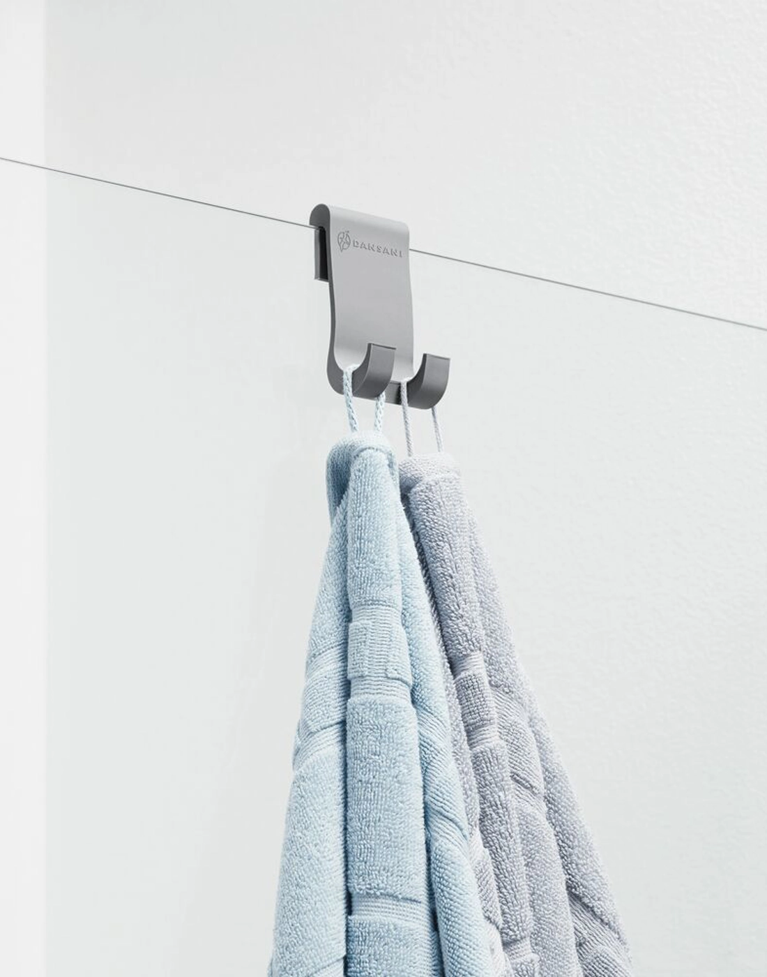 Denne smarte håndklædekrog i silikone fås i både lys og mørk grå. Det er et sæt med to dobbeltkroge, der er meget praktiske. Du kan hænge dem på kanten af bruseglasset, enten indvendigt eller udvendigt. Disse kroge er perfekte til at hænge håndklæder, børster, svampe og andre ting, så de er lige ved hånden, når du er i bad og har brug for dem.