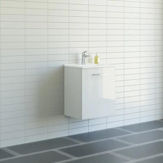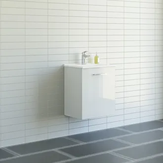Denne 50 cm møbelpakke med venstrehængslet låge er ideel til mindre badeværelser, hvor pladsen skal udnyttes optimalt. Med tidssvarende designs og overflader, der indbyder til gode vaskerutiner, tåler møbelpakken både mascara-klatter og høj skumføring hver eneste dag. Bag den venstrehængslede låge finder du god hyldeplads til håndklæder og rengøringsflasker, og lågen lukker med soft-close, som kan finjusteres efter behov. Amber Mini håndvasken i sanitetsporcelæn har afrundede sider og en god dybde. Vasken er både holdbar og nem at rengøre. Vælg mellem seks klassiske farver og overflader: hvid mat, hvid højglans, grå mat, pine grey, sort struktur og varm eg. Leveres færdigsamlet og klar til montering.