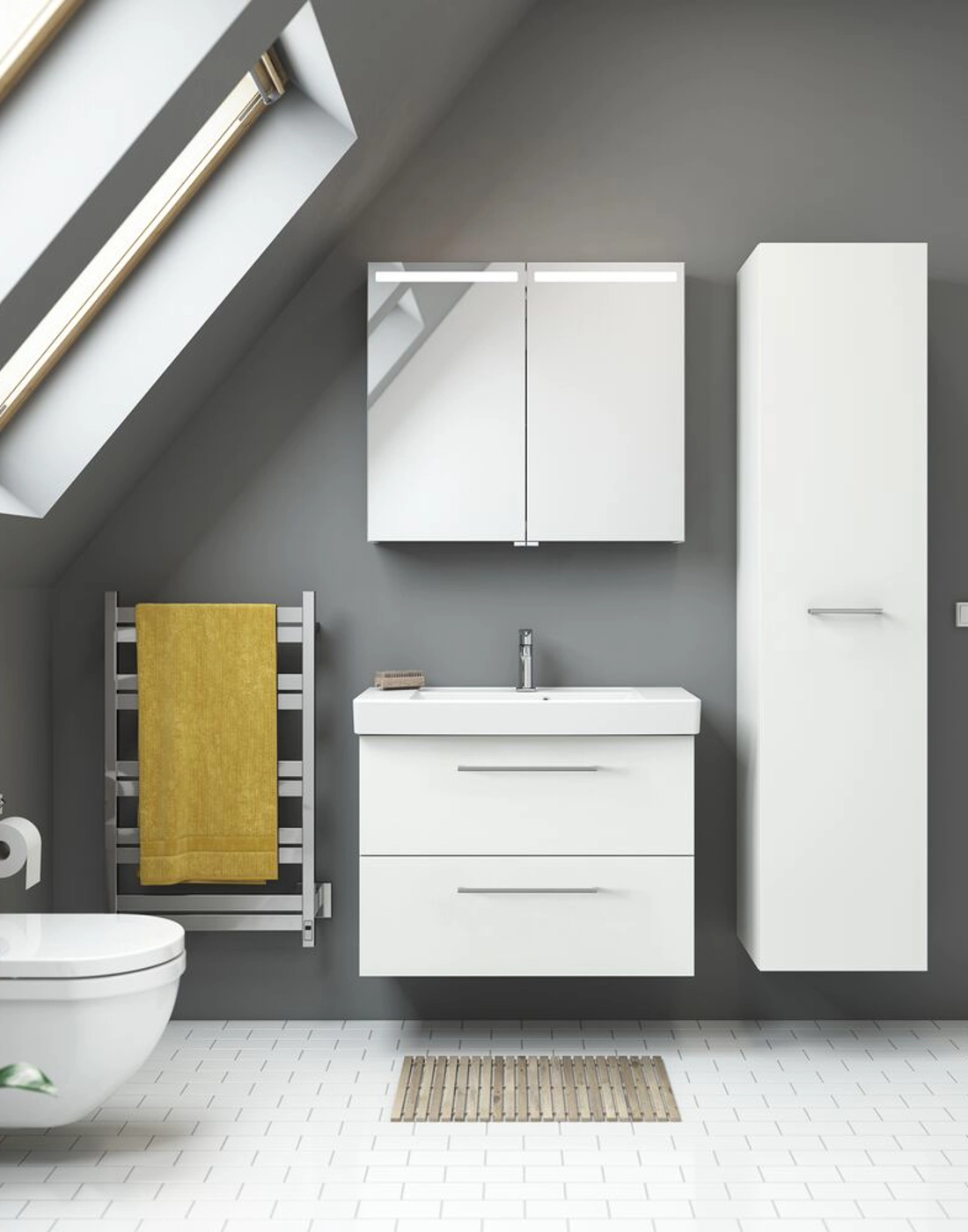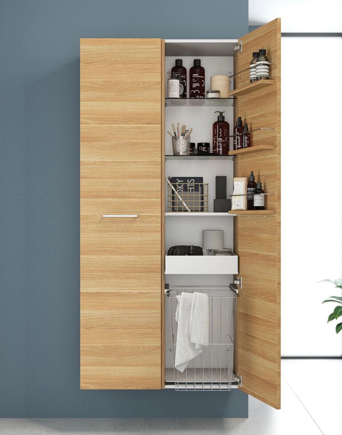 Gør brug af hver centimeter plads i dit badeværelse med Dansani Mido+ højskabet. Men et højskab får du plads til alle dine ting på badeværelset, så har du pladsen til det, så anbefaler vi helt klart et højskab til dit badeværelse. I dette højskab finder du 1 træhylde, 4 glashylder samt 3 hylder i selve lågen, så du her får god plads og mulighed for at indrette dit optimalt på badeværelset. Oplev en ny dimension af orden og design på dit badeværelse med Dansani Mido+ højskabet.