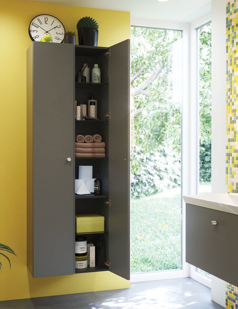 Gør brug af hver centimeter plads i dit badeværelse med Dansani Mido+ højskabet. Men et højskab får du plads til alle dine ting på badeværelset, så har du pladsen til det, så anbefaler vi helt klart et højskab til dit badeværelse. I dette højskab finder du 1 træhylde, 4 glashylder samt 3 hylder i selve lågen, så du her får god plads og mulighed for at indrette dit optimalt på badeværelset. Oplev en ny dimension af orden og design på dit badeværelse med Dansani Mido+ højskabet.