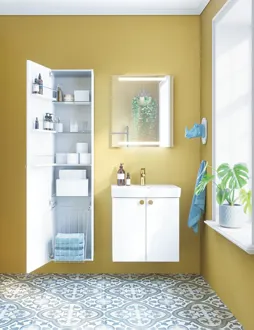 Gør brug af hver centimeter plads i dit badeværelse med Dansani Mido+ højskabet. Men et højskab får du plads til alle dine ting på badeværelset, så har du pladsen til det, så anbefaler vi helt klart et højskab til dit badeværelse. I dette højskab finder du 1 træhylde, 4 glashylder samt 3 hylder i selve lågen, så du her får god plads og mulighed for at indrette dit optimalt på badeværelset. Oplev en ny dimension af orden og design på dit badeværelse med Dansani Mido+ højskabet.