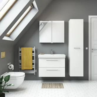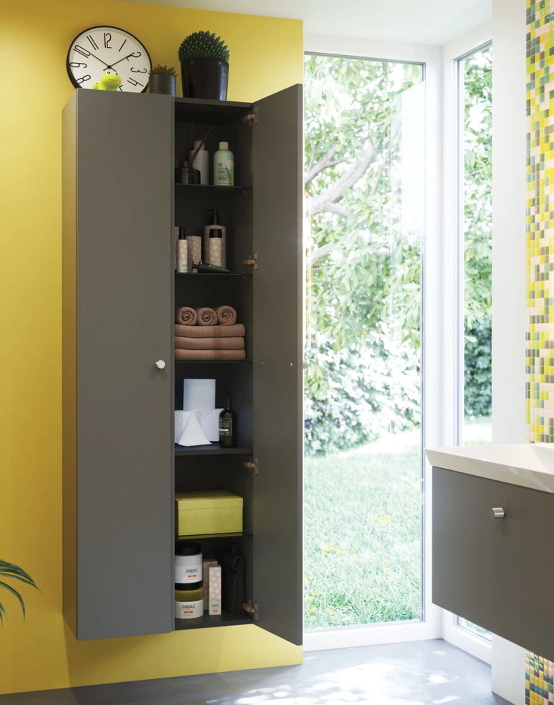 Gør brug af hver centimeter plads i dit badeværelse med Dansani Mido+ højskabet. Men et højskab får du plads til alle dine ting på badeværelset, så har du pladsen til det, så anbefaler vi helt klart et højskab til dit badeværelse. I dette højskab finder du 1 træhylde, 4 glashylder samt 3 hylder i selve lågen, så du her får god plads og mulighed for at indrette dit optimalt på badeværelset. Oplev en ny dimension af orden og design på dit badeværelse med Dansani Mido+ højskabet.