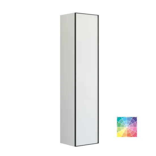 Få et moderne og stilrent udtryk med et højskab på 40 cm bredde med sort ramme. Dette elegante højskab er i versoin A, som er et højskab med en træhylde og fem glashylder, der giver masser af opbevaringsplads til dine badeværelsesartikler. Den sorte ramme tilføjer en sofistikeret kontrast, der passer perfekt ind i ethvert badeværelse. Med dette højskab får du både funktionalitet og et tidløst design, der hjælper med at holde dit badeværelse organiseret og stilfuldt. OBS: Der er et opstartstillæg (BI1) til produkter med valgfri farve. Det betales én gang pr. valgfri farve uanset antal produkter. Husk at tilvælge de små praktiske ting til dine badeværelsesmøbler, som du dagligt vil glæde dig over. Fx lys i skuffer og skabe, indbygget el-stik og dæmpet sensorlys under møblet, som guider det natlige badeværelsesbesøg. Tilvalg bestilles samtidig med dine møbler.