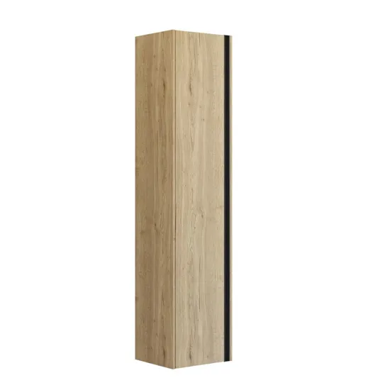 Højskabet i version B med integreret greb er perfekt til dig, der ønsker både stil og funktionalitet. Med én træhylde og tre forkortede glashylder er dette skab ideelt til opbevaring af forskellige badeværelsesartikler. De tre træbakker på lågen er perfekte til små genstande, mens de to glashylder gør det muligt at vise dine favoritprodukter. Den elegante sorte farve på grebet skaber en flot kontrast og tilføjer et raffineret touch til dit badeværelse. OBS: Der er et opstartstillæg (BI1) til produkter med valgfri farve. Det betales én gang pr. valgfri farve uanset antal produkter. Husk at tilvælge de små praktiske ting til dine badeværelsesmøbler, som du dagligt vil glæde dig over. Fx lys i skuffer og skabe, indbygget el-stik og dæmpet sensorlys under møblet, som guider det natlige badeværelsesbesøg. Tilvalg bestilles samtidig med dine møbler.