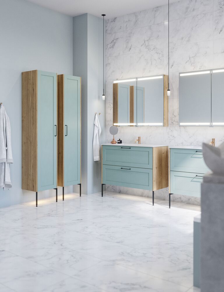 Højskabet med klassisk rammefront i version B er designet til at give dig funktionalitet og stil. Med én træhylde og tre forkortede glashylder er dette skab ideelt til opbevaring af forskellige badeværelsesartikler. De tre træbakker på lågen giver ekstra opbevaringsmuligheder til mindre genstande som kosmetik og medicin, mens de to glashylder er perfekte til at fremvise dine yndlingsprodukter. Den klassiske stil på rammefronten tilføjer et tidløst udtryk til dit badeværelse. OBS: Der er et opstartstillæg (BI1) til produkter med valgfri farve. Det betales én gang pr. valgfri farve uanset antal produkter. Husk at tilvælge de små praktiske ting til dine badeværelsesmøbler, som du dagligt vil glæde dig over. Fx lys i skuffer og skabe, indbygget el-stik og dæmpet sensorlys under møblet, som guider det natlige badeværelsesbesøg. Tilvalg bestilles samtidig med dine møbler.