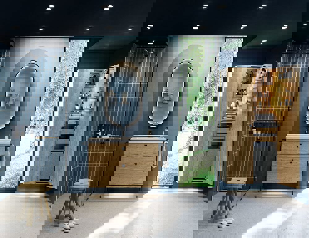 Få det bedste ud af dit badeværelse med et højskab på 40 cm bredde og glat front i version C. Dette betyder at højskaber kommer med en træhylde, tre forkortede glashylder, tre træbakker på lågen, to udtræksbakker og en praktisk vasketøjspose. Den gennemtænkte opbevaringsløsning giver dig mulighed for at organisere alt fra håndklæder til vasketøj, mens den glatte front og det stilfulde design tilføjer et elegant præg til rummet. Med dette højskab version C får du en funktionel og smuk løsning, der passer perfekt ind i ethvert badeværelse. OBS: Der er et opstartstillæg (BI1) til produkter med valgfri farve. Det betales én gang pr. valgfri farve uanset antal produkter. Husk at tilvælge de små praktiske ting til dine badeværelsesmøbler, som du dagligt vil glæde dig over. Fx lys i skuffer og skabe, indbygget el-stik og dæmpet sensorlys under møblet, som guider det natlige badeværelsesbesøg. Tilvalg bestilles samtidig med dine møbler.