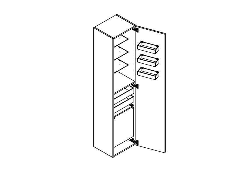 Få en alsidig opbevaringsløsning med et højskab på 40 cm bredde med riflet front. Dette højskab er i en udgave, der hedder version C, som betyder at højskabet har en træhylde, tre forkortede glashylder, tre træbakker på lågen, to udtræksbakker og en praktisk vasketøjspose. Den gennemtænkte opbevaringsløsning gør det muligt at organisere alt fra kosmetik til vasketøj, mens den riflede front giver et sofistikeret udtryk. Med dette højskab får du rigtigt meget værdi for pengene. OBS: Der er et opstartstillæg (BI1) til produkter med valgfri farve. Det betales én gang pr. valgfri farve uanset antal produkter. Husk at tilvælge de små praktiske ting til dine badeværelsesmøbler, som du dagligt vil glæde dig over. Fx lys i skuffer og skabe, indbygget el-stik og dæmpet sensorlys under møblet, som guider det natlige badeværelsesbesøg. Tilvalg bestilles samtidig med dine møbler.