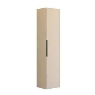 Dette højskab er designet til fleksibilitet og rummelighed. Med en vendbar låge kan du tilpasse skabet til din indretning, uanset hvilken retning du foretrækker. Indvendigt finder du en robust træhylde samt 4 flytbare glashylder, der giver dig masser af opbevaringsmuligheder. Skabet fås i hvid, sand eller lyseblå, og grebet er monteret, så skabet er klar til brug.