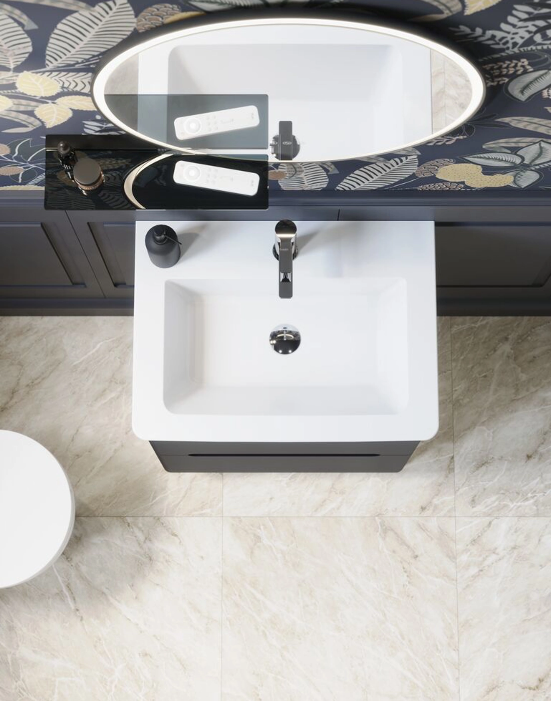 Hoop spejlet er inspireret af svæverammer, hvor rammen svæver frit omkring spejlet og skaber en dynamisk og let æstetik. Den svungne inderramme leder lyset fra bagsiden fremad, hvilket giver et blødt, ikke-blændende lys, der spreder sig jævnt i rummet. Med den indbyggede lysstyring kan du nemt justere lysstyrken efter behov, så du kan skabe den perfekte atmosfære – fra kraftigt lys til makeup til blødt lys til afslapning. Hoop spejlet kommer som standard med en sort ramme, men du kan vælge at få yderrammen lakeret i en specialfarve for at matche din indretning. OBS: Der er et opstartstillæg (BI1) til produkter med valgfri farve. Det betales én gang pr. valgfri farve uanset antal produkter.