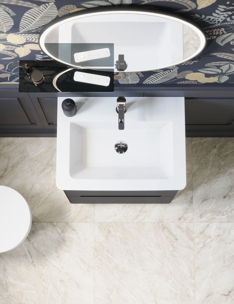 Hoop spejlet er inspireret af svæverammer, hvor rammen svæver frit omkring spejlet og skaber en dynamisk og let æstetik. Den svungne inderramme leder lyset fra bagsiden fremad, hvilket giver et blødt, ikke-blændende lys, der spreder sig jævnt i rummet. Med den indbyggede lysstyring kan du nemt justere lysstyrken efter behov, så du kan skabe den perfekte atmosfære – fra kraftigt lys til makeup til blødt lys til afslapning. Hoop spejlet kommer som standard med en sort ramme, men du kan vælge at få yderrammen lakeret i en specialfarve for at matche din indretning. OBS: Der er et opstartstillæg (BI1) til produkter med valgfri farve. Det betales én gang pr. valgfri farve uanset antal produkter.