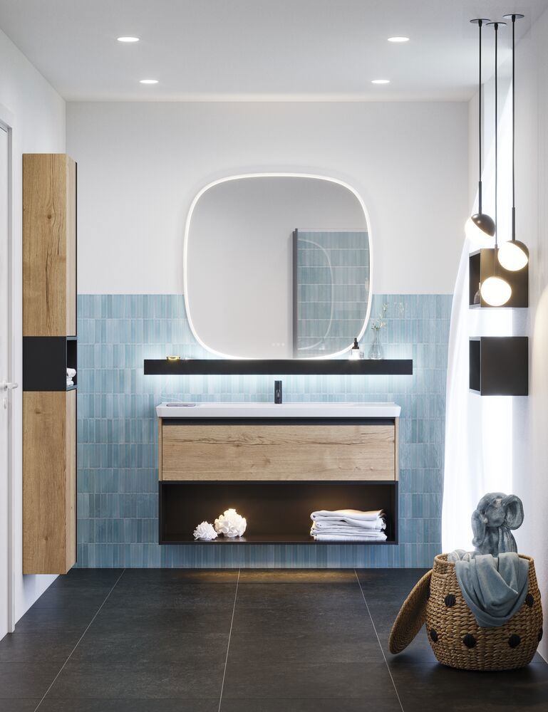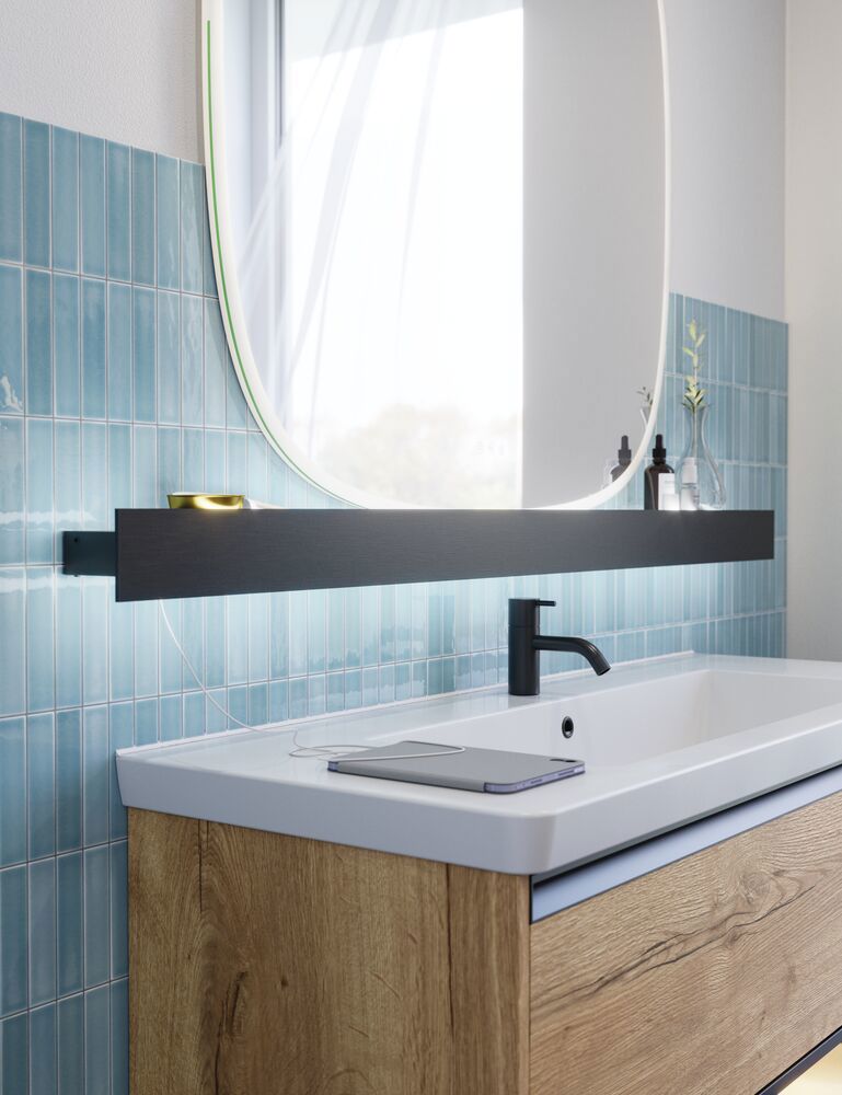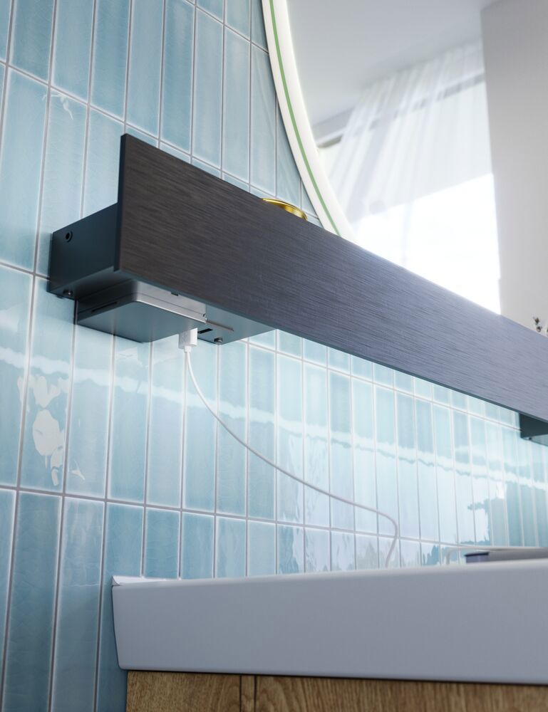 Illumi hylde med lys, stikkontakt, 2 x USB og håndklædeholder