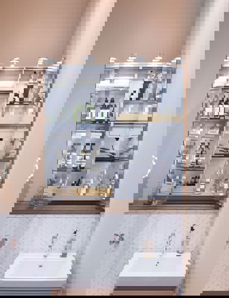 Indvendigt LED lys i begge sider af spejlskab