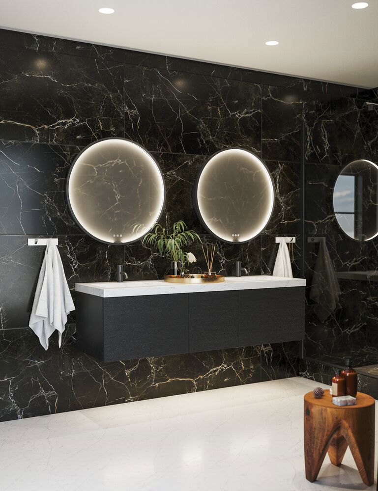Moon spejlet er et smukt og elegant rundt spejl med en ramme, der gør spejlet til et dekorativt element i enhver indretning. Spejlets kraftige ramme er lavet af robuste materialer og giver spejlet et moderne og stilfuldt look. Du kan desuden selv styre lysets styrke og varme, da Moon spejlet selvfølgelig fås med lysstyring. Rammen rundt om spejlet fås i flere forskellige farver som sort, hvid og messing, så det kan tilpasses efter din personlige stil og indretning. Spejlet er perfekt til badeværelset eller soveværelset og med Moon spejlet kan du skabe et rum med elegance og tidløs skønhed. Til spejlet kan du tilkøbe et formonteret varmelegeme, så du undgår at spejlet dugger, når du er i bad.