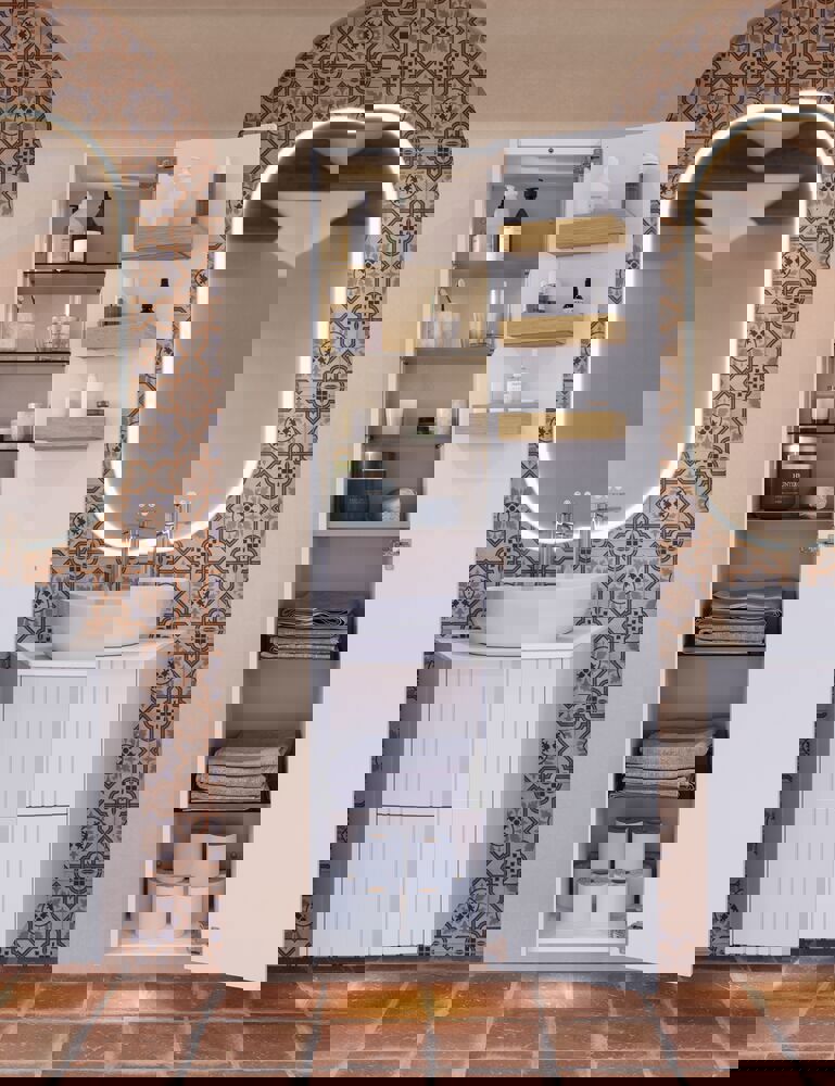 Natura grebet er en elegant træknop i lakeret eg eller valnød, designet til at tilføje varme og karakter til badeværelset. Med sin naturlige træfinish står Natura som en smuk kontrast til både hvide møbler og dem i mere unikke farver, hvor den fremhæver og komplimenterer farvevalget. Grebet giver et indbydende, organisk touch, der skaber harmoni mellem møblerne og badeværelsets øvrige elementer, uanset stil og indretning.