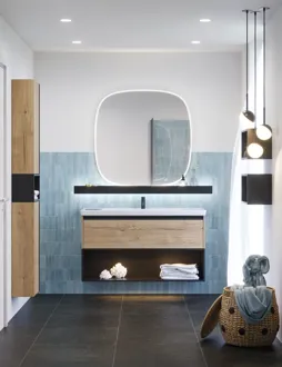 Giv dit badeværelse et moderne touch med et overskab med integreret greb. Dette skabs enkle, men stilfulde design gør det til en ideel løsning til at optimere pladsen. De to glashylder giver mulighed for at vise dine badeværelsesartikler og holde dem organiseret. Med dette overskab får du ikke kun praktisk opbevaring, men også en smuk detalje, der kan kombineres med en åben reol, hvilket tilføjer både funktionalitet og æstetik til dit badeværelse. OBS: Der er et opstartstillæg (BI1) til produkter med valgfri farve. Det betales én gang pr. valgfri farve uanset antal produkter. Husk at tilvælge de små praktiske ting til dine badeværelsesmøbler, som du dagligt vil glæde dig over. Fx lys i skuffer og skabe, indbygget el-stik og dæmpet sensorlys under møblet, som guider det natlige badeværelsesbesøg. Tilvalg bestilles samtidig med dine møbler.