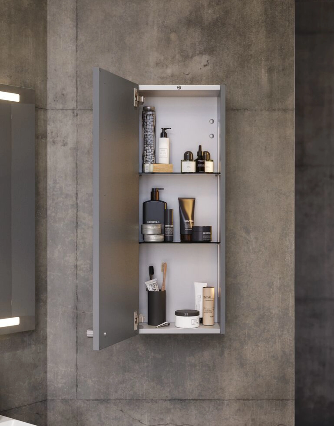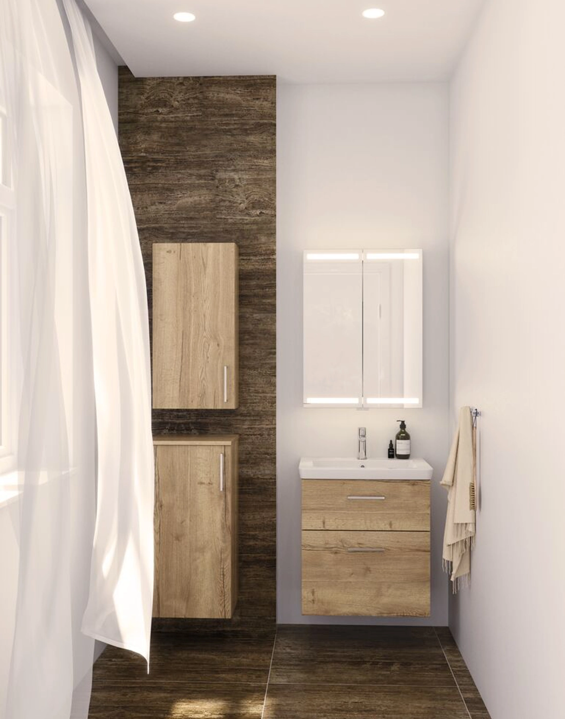Frigør plads og organiser dit badeværelse med overskabe. Dette smarte skab fås med 2 glashylder, og her får du et skab, der både har stil og funktionalitet. Brug overskabet til opbevaring på dit badeværelse, så du kan holde orden på cremer, deo osv. på badeværelset. Overskabet fås i flere forskellige farver, så det selvfølgelig matcher resten af dit badeværelse. OBS: Der er et opstartstillæg (BI1) til produkter med valgfri farve. Det betales én gang pr. valgfri farve uanset antal produkter. Husk at tilvælge de små praktiske ting til dine badeværelsesmøbler, som du dagligt vil glæde dig over. Fx lys i skuffer og skabe, indbygget el-stik og dæmpet sensorlys under møblet, som guider det natlige badeværelsesbesøg. Tilvalg bestilles samtidig med dine møbler.